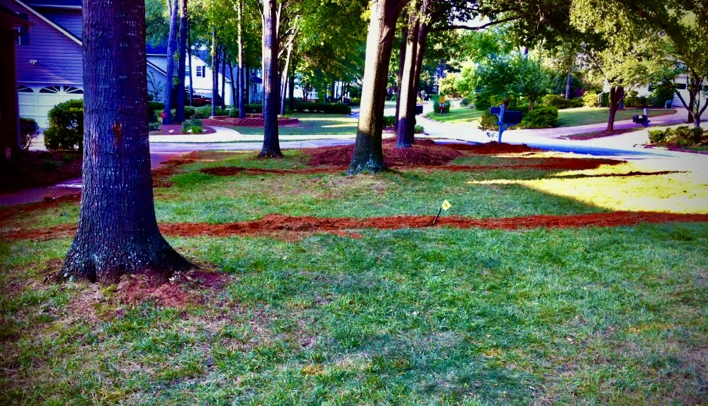 I remember the day the men came to begin installing the system. I stood in the window of one of our upstairs bedrooms, surveying the fairly green lawn, and thought, this yard looks good enough. In my mind, I wondered if we were wasting our money. It would be okay if we just left it as it is. And then the digging began.